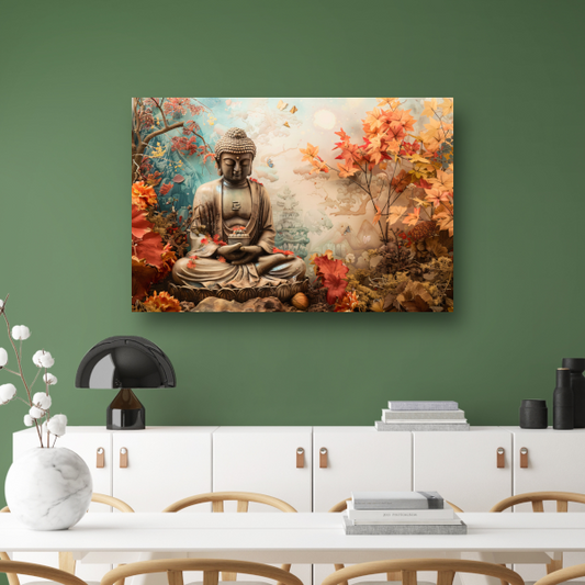 Gouden Boeddha met Harmonische Herfsttinten canvas