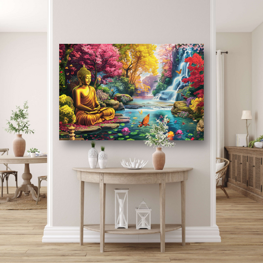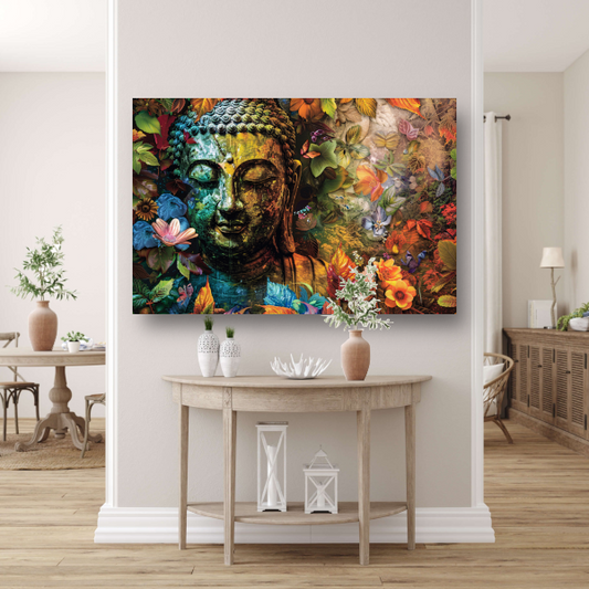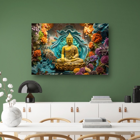 Canvas schilderij - Boeddha in kleurrijk natuurparadijs