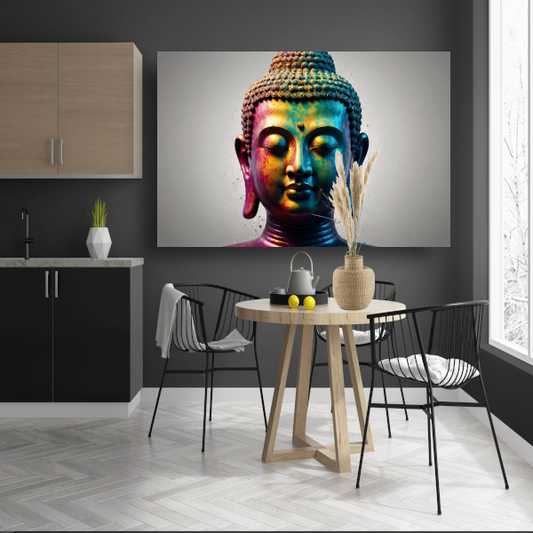 Boeddha Hoofd in Verrassende Kleurexplosie poster