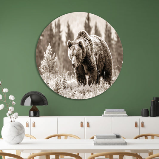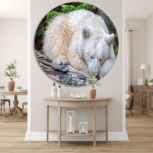 Slapende beer op boomstam in de natuur aluminium muurcirkel