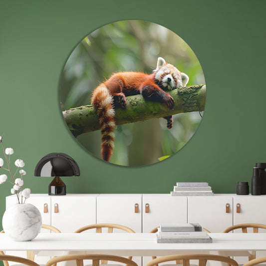 Rode panda ontspannen op een boomtak aluminium muurcirkel