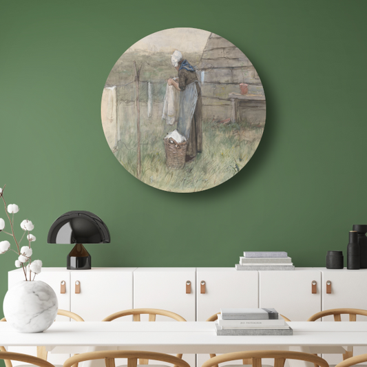 Vrouw bij een waslijn - Anton Mauve aluminium muurcirkel