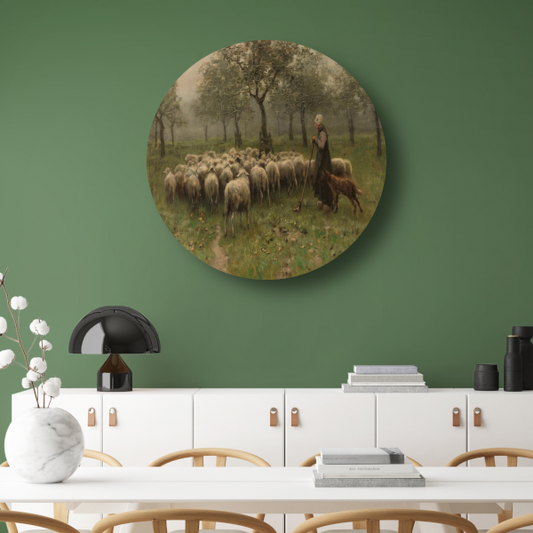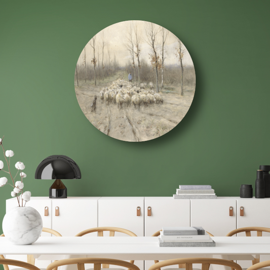 Herderin met kudde schapen - Anton Mauve aluminium muurcirkel