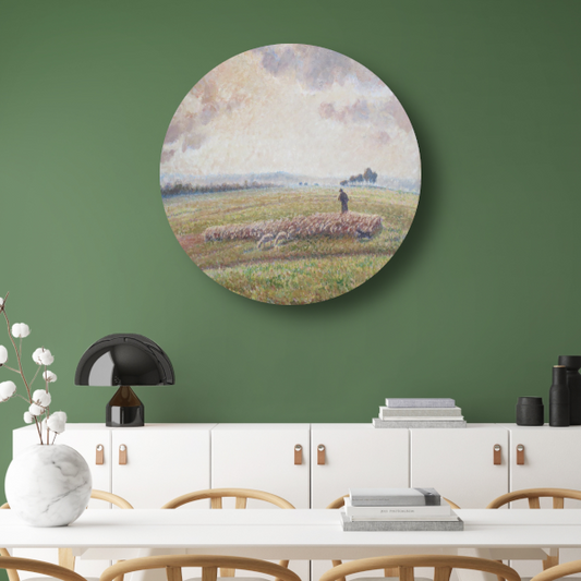Landschap met kudde schapen - Camille Pissarro aluminium muurcirkel