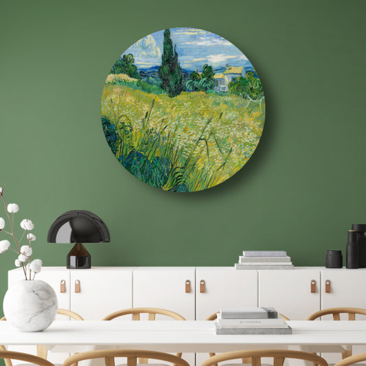 Groen Tarweveld met Cipres - Vincent van Gogh aluminium muurcirkel