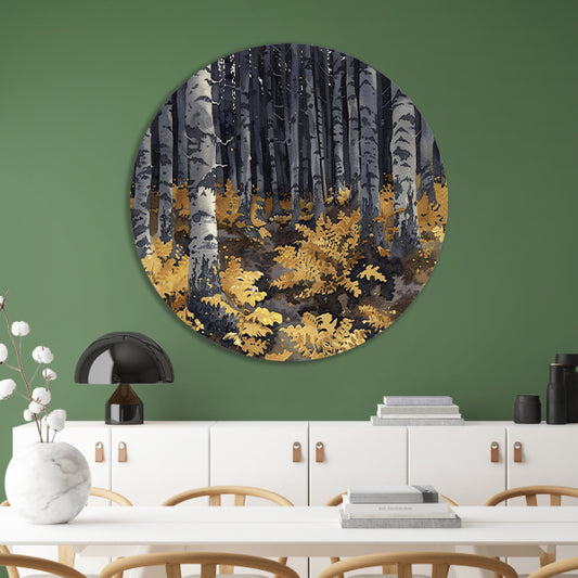 Realistisch schilderij van bomen en varens aluminium muurcirkel