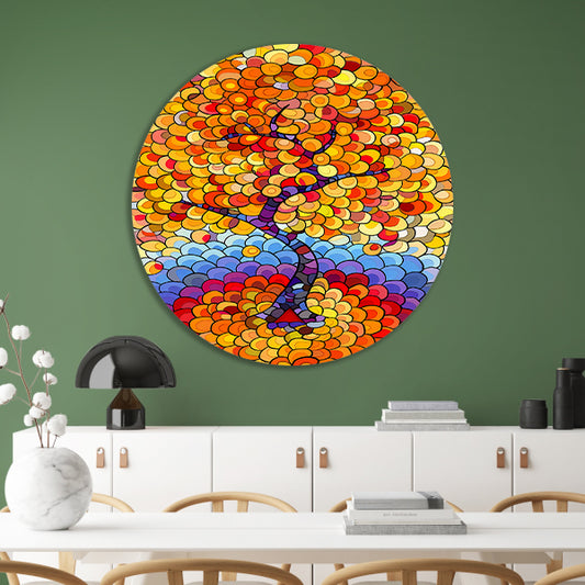 Kleurrijke Boom bij Expressieve Zonsondergang aluminium muurcirkel