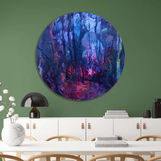 Vibrant Abstract Forest Scene in Rich Colors aluminium muurcirkel