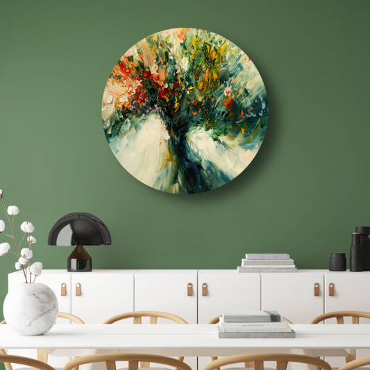Abstract expressionistisch bos in kleurrijke olieverf aluminium muurcirkel