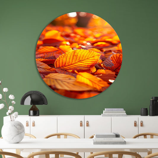 Herfstbladeren in Warm Zonlicht aluminium muurcirkel
