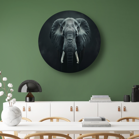 Olifant in het Duister met Slagtanden aluminium muurcirkel