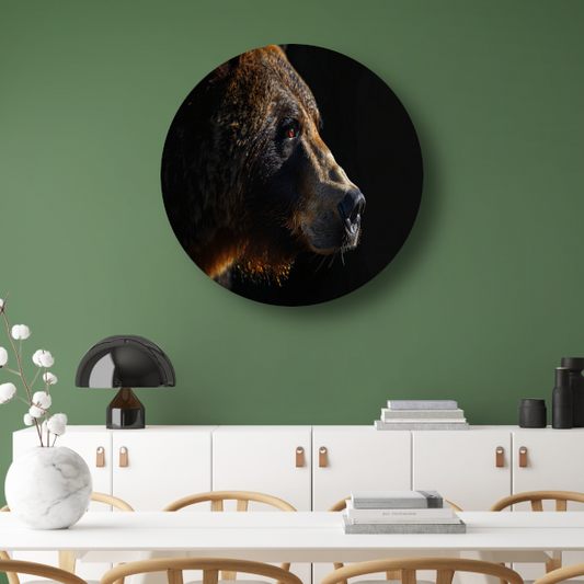Portret van een Beer in Diepe Schaduwen aluminium muurcirkel