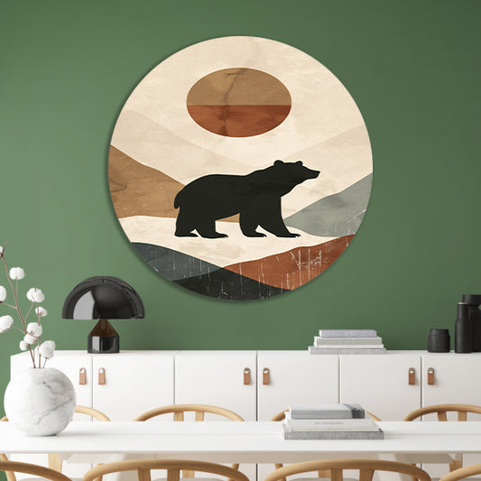 Beer in abstract landschap met geometrische zon aluminium muurcirkel