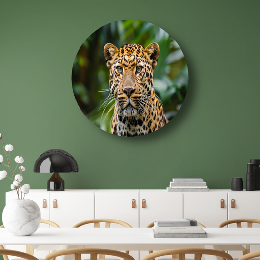 Luipaard Tussen Groen in Jungle aluminium muurcirkel