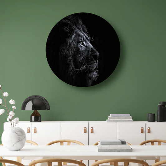 Koninklijke leeuw in zwart-wit portret aluminium muurcirkel