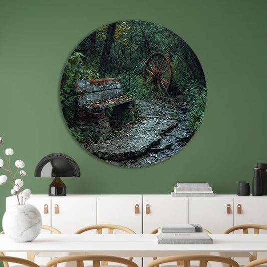 Impressionistisch bankje in het bos aluminium muurcirkel