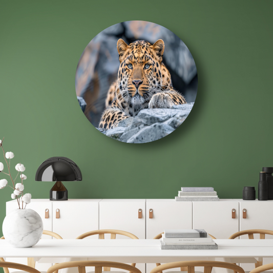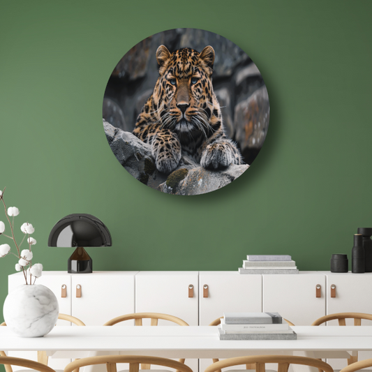 Intense Blik van Bedreigde Amoerluipaard aluminium muurcirkel