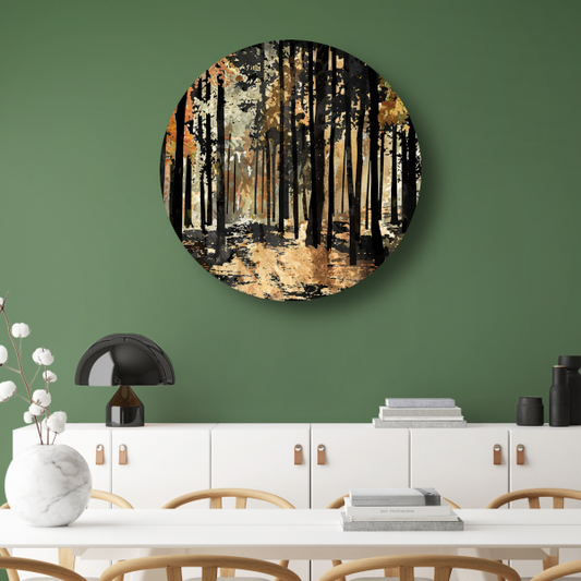 Stedelijke bomen in abstracte herfstkleuren aluminium muurcirkel