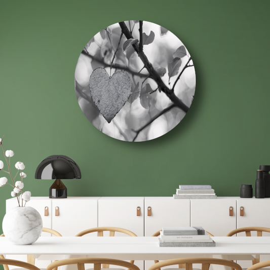 Hart van natuur in monochrome tinten aluminium muurcirkel