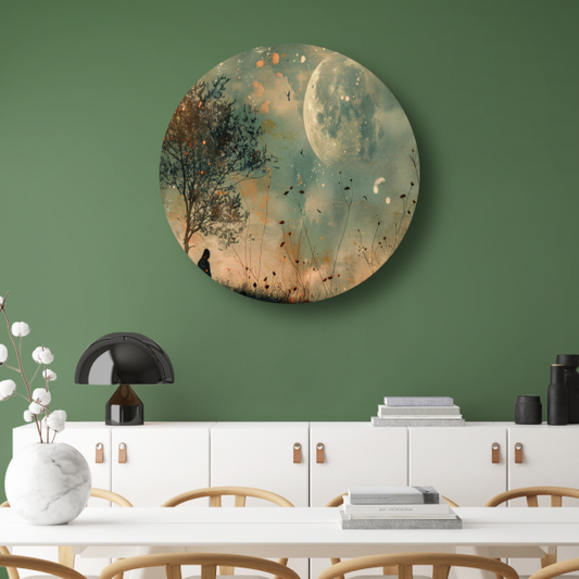 Een stille contemplatie onder de maan aluminium muurcirkel