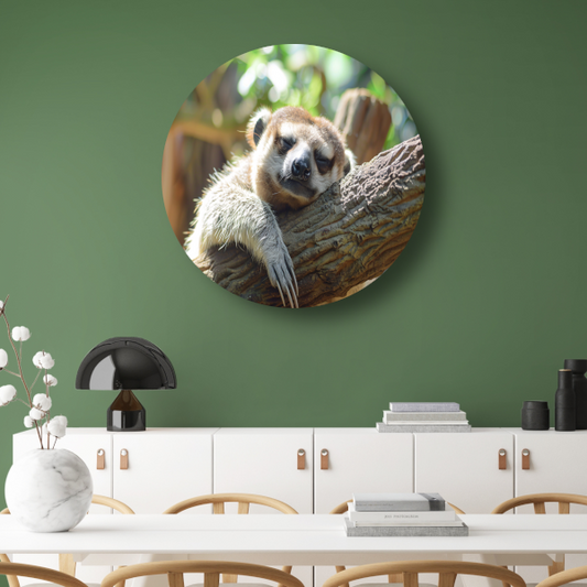 Luiaard genietend van zon in natuur aluminium muurcirkel