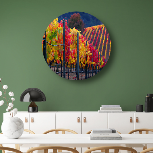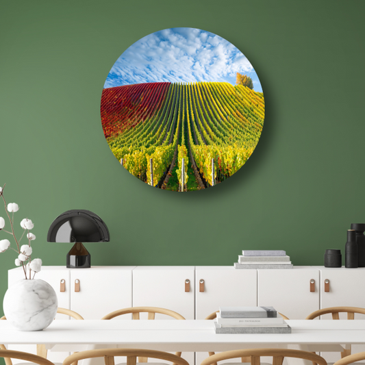 Wijngaard in Herfsttinten Panorama aluminium muurcirkel