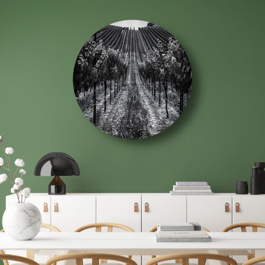 Zwart-Wit Symmetrie van Wijngaard Lijnen aluminium muurcirkel