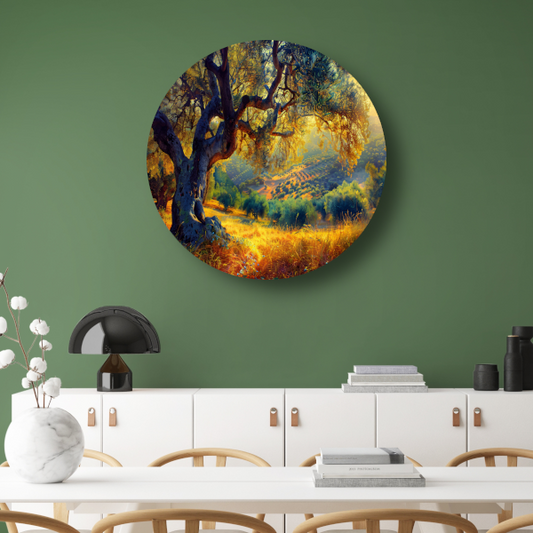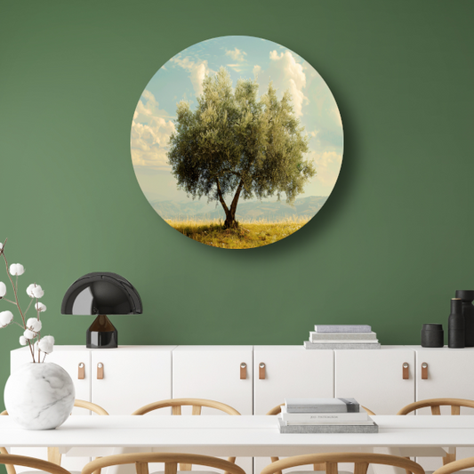 Olijfboom onder Provençaalse hemel aluminium muurcirkel
