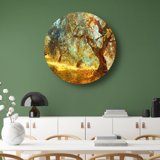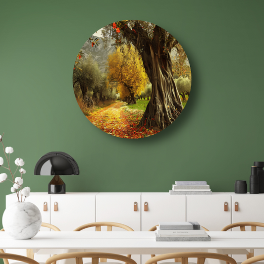 Klassieke olijfbomenlaan aluminium muurcirkel