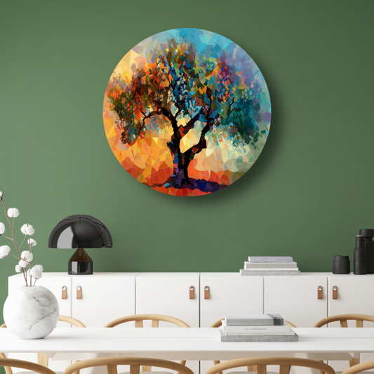 Kleurrijke Abstracte Boom aluminium muurcirkel