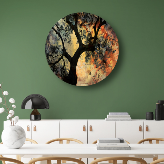 Kleurrijk Abstracte Boomlandschap aluminium muurcirkel