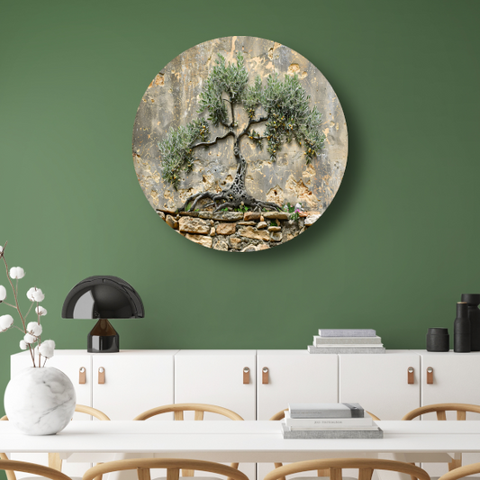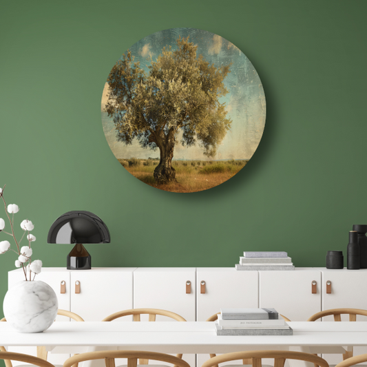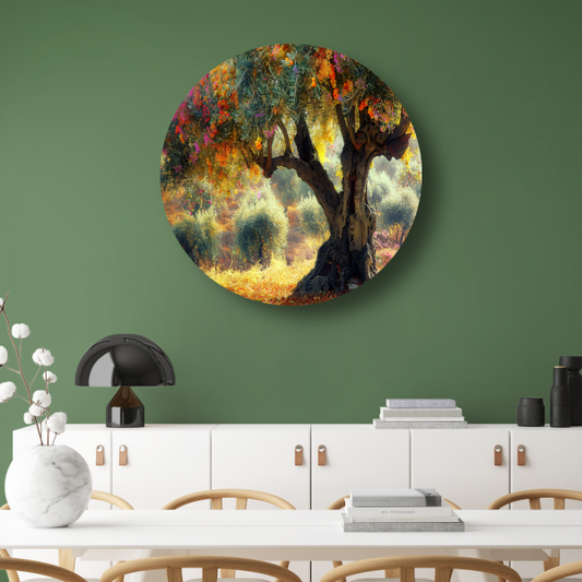 Olijfboom in Impressionistische Stijl aluminium muurcirkel