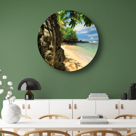 Verborgen Sculpturen aan een Tropisch Strand aluminium muurcirkel