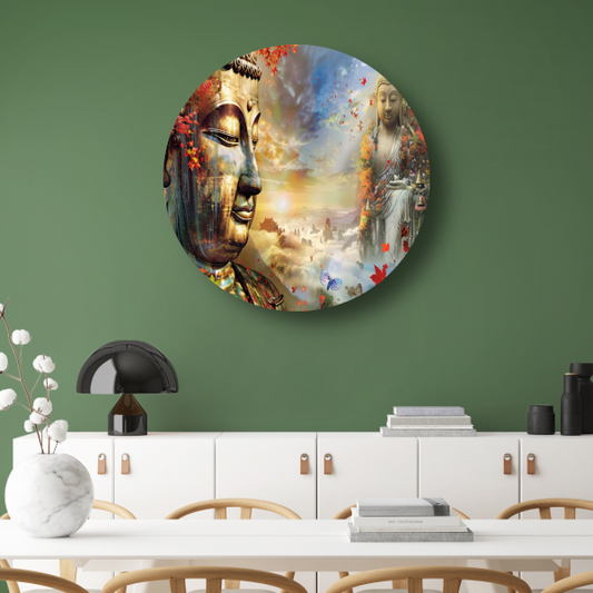 Boeddha in Herfstpracht met Vlinders aluminium muurcirkel