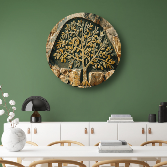 Olijfboom in sepia tonen op steen aluminium muurcirkel