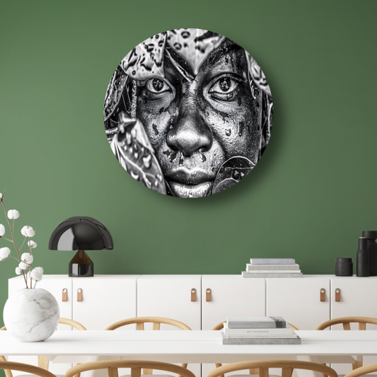 Gezicht Verborgen Tussen Natte Bladeren aluminium muurcirkel