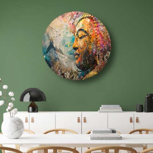 Eclectische Boeddha met Kleurrijke Achtergrond aluminium muurcirkel