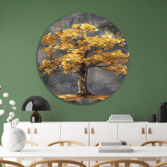 Schilderij van een boom met gouden bladeren aluminium muurcirkel