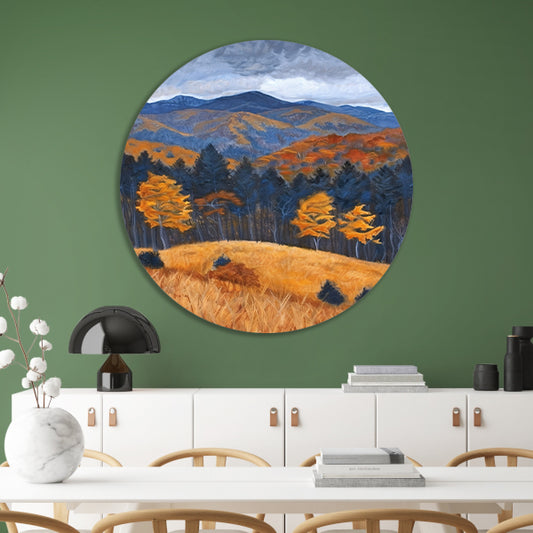 Herfstlandschap met bergen en kleurrijke bomen aluminium muurcirkel
