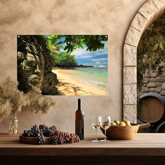 Verborgen Sculpturen aan een Tropisch Strand tuinposter