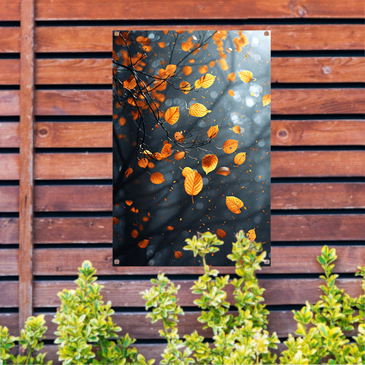 Oranje Bladeren Dansen in de Regen tuinposter
