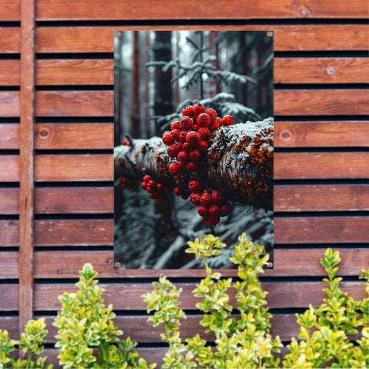 Rode bessen in de winterse sneeuw tuinposter