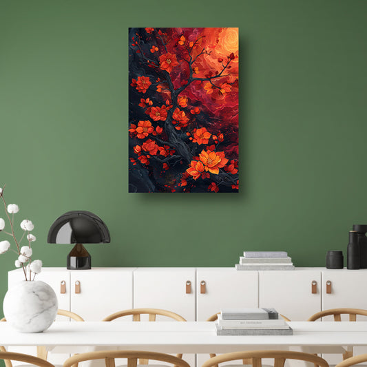 Abstracte Boom omgeven door Vurige Kleuren canvas