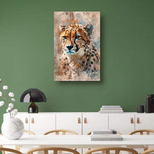 Dynamisch en kleurrijk schilderij van een cheetaposter