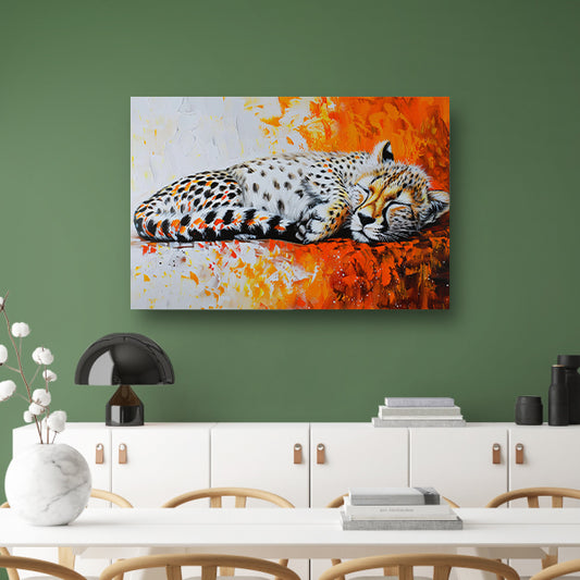 Slapende cheeta met kleurrijke oranje achtergrond acrylglas