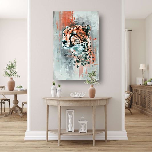 Dynamisch en kleurrijk schilderij van een cheeta acrylglas