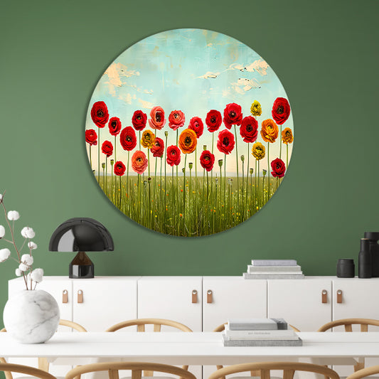 Abstracte kleurrijke bloemen in een veld aluminium muurcirkel
