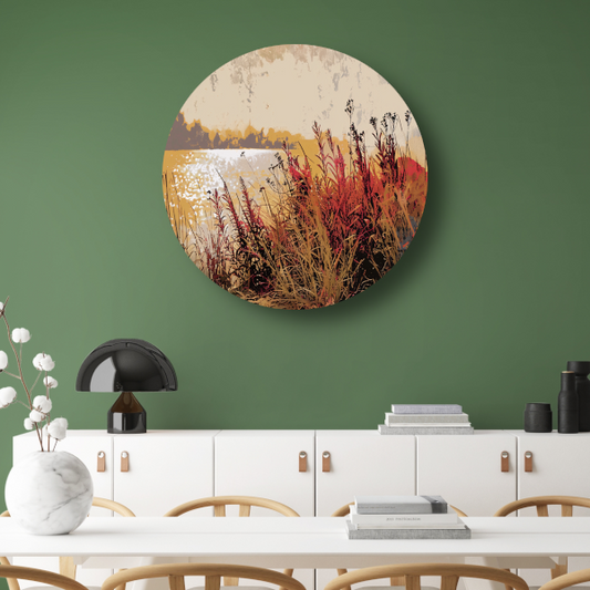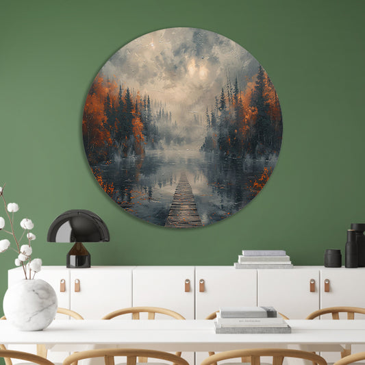 Impressionistisch Landschap met Mist aluminium muurcirkel