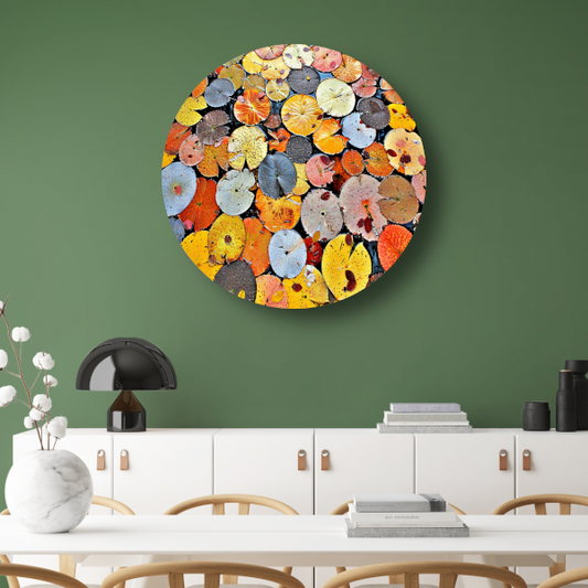 Impressionistische waterlelies in vijver aluminium muurcirkel