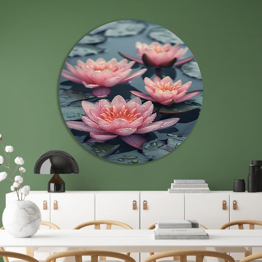 Roze waterlelies drijven op kalm water aluminium muurcirkel